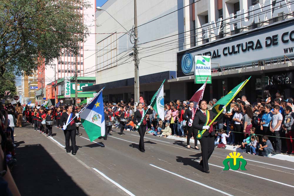 Muita gente compareceu ao desfile, que contou com 89 instituições, entre elas o 26º GAC - Grupo Visconde de Guarapuava, 16º BPM, Corpo de Bombeiros, Escolas da Rede Publica, e Faculdades Particulares