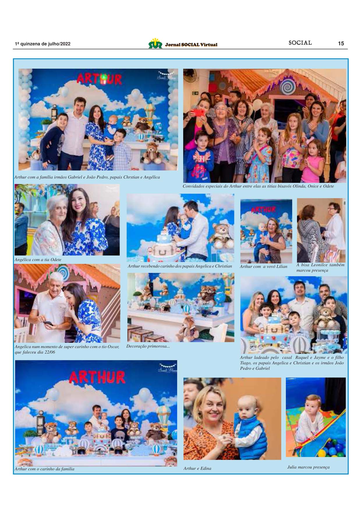Chegando quentinho a edição nº50, 2ª quinzena de julho/2022 do Jornal Social Virtual.. Muitas fotos bonitas do dia dos Avós, história, homenagens aos amigos e que passaram dessa vida, coluna de São Paulo de Ovadia Saadia, aniversários. A próxima edição será especial aos pais. Mande sua foto com os filhos para e-mail: jornalsur@gmail.com.